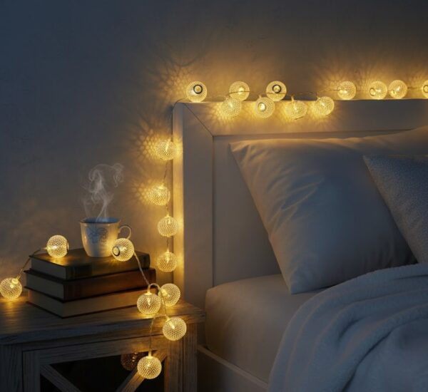 Golden Metal Ball Fairy Lights – 20 LED String Lights, 3.3M – Warm White Glow