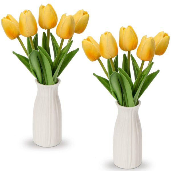 This beautiful bouquet of artificial Yellow Tulips captures the warmth, joy, and energy of sunshine. Yellow tulips traditionally symbolize happiness, cheerfulness, and hope, making them perfect for adding a bright, optimistic touch to any environment.