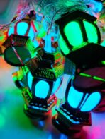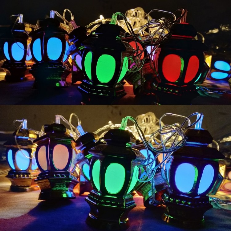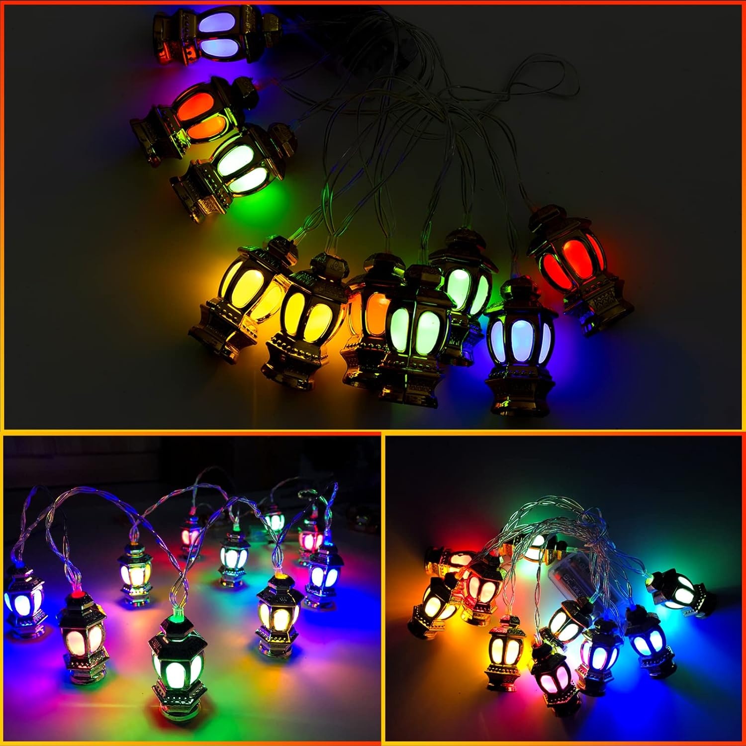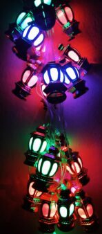 - Vibrant Multi-Color Illumination: Each lantern cycles through or displays a combination of bright colors, creating a lively and energetic display.