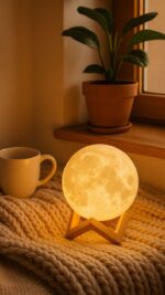 Add a magical glow to your space with this realistic 3D printed moon lamp. With 9 vibrant RGB colors, it’s perfect for children’s rooms, home decor, and mood lighting.